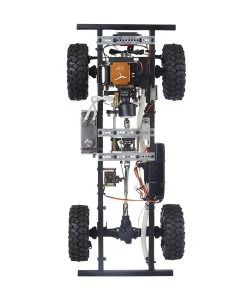 2, The frame includes the main frame, axle, tire, gear box, transmission shaft, steering gear mounting frame, steering / throttle / shift lever, Reduction pulley, bow plate damping. The gears inside the axle are made of all metal and the axle housing is made of plastic. Electronic equipment includes four-channel remote control and receiver, steering engine, throttle brake steering engine, gear shift steering engine (can control throttle, brake, forward and backward gear shift, left and right direction)