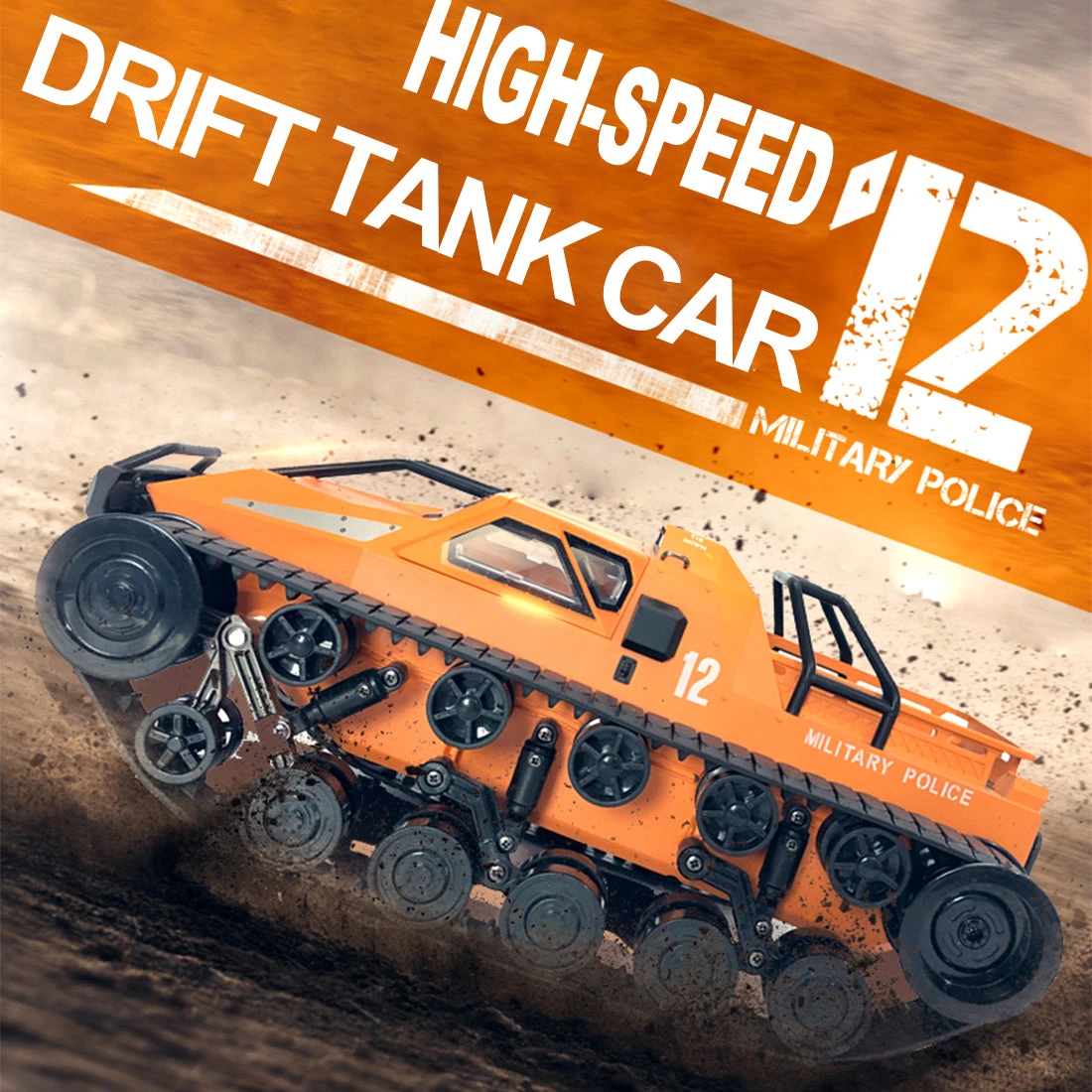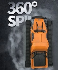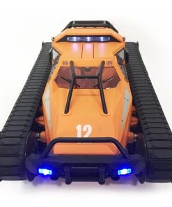 The four-wheel drive high speed drift tank is equipped with a powerful 390 motor and can reach a top speed of 12KM/H. With its unique tank wheels, it can ride easily over sand, shallow water and rocks, making it an excellent off-road crawler for indoor or outdoor play.