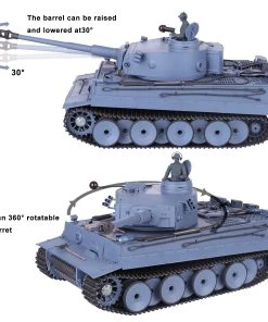 .Simulation Tank: German Tiger I heavy tank model painted in camouflage blue is replicated with exquisite details. Tracks, gearboxe, road wheels, driving wheels, inducers, etc. are all made of high-quality metal materials to enhance the strength and durability of the tank. Independent suspension design makes it easy to drive on uneven ground and maneuver freely.