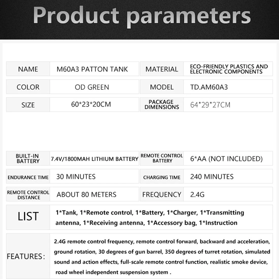 .Giving an accurate representation of the American M60A3 tank, the cool and realistic infrared RC tank model is our latest high-end simulated tank model with high temperature protection and low voltage overcurrent protection.