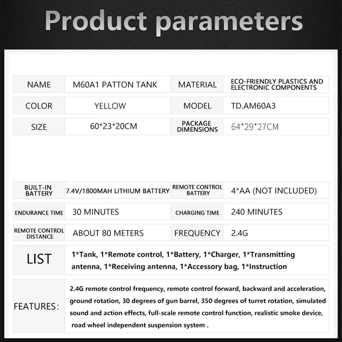 .Giving an accurate representation of the American M60A1 tank, the cool and realistic infrared RC tank model is our latest high-end simulated tank model with high-temperature protection and low voltage overcurrent protection.