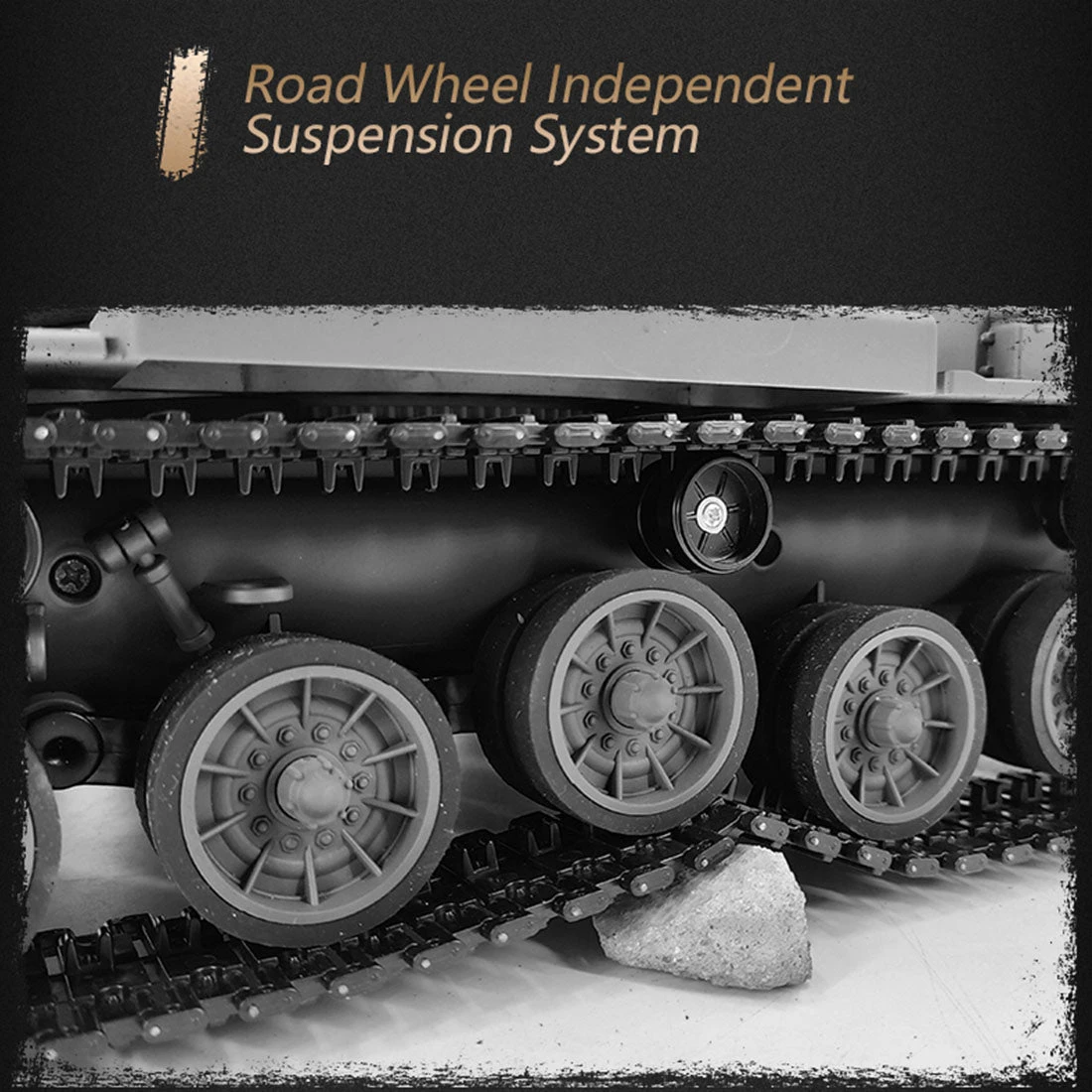 .As a perfect companion, the model boasts abundant playing methods, including moving forward&backward or speed up, authentic smoking, neutral turning, shooting BB bombs while being shockproof, 30° up and down adjustable artillery, 320° rotatable battery, simulated sounds&motion effects, full-scale remote control function, self-modifiable channels to play simultaneously among multiple tanks, super chassis, realistic suspension system, as a commander.