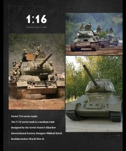 1/16 RC Tank Soviet T-34 Medium Tank 2.4G Remote Control Model Military Tank with Sound Smoke Shooting Effect – Upgraded Edition