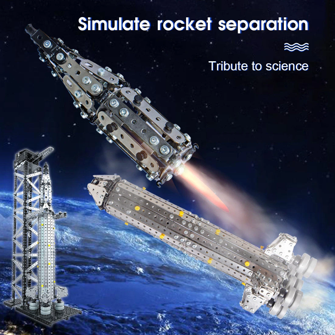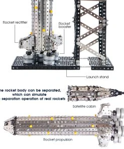 Imitation of Saturn V, collapsible tower crane cap, lazy arm rotating tower, rocket main satellite bin, rocket fixed clamp arm, rocket fuel bin, rocket rectifier, rocket booster. The body can be separated, imitating the separation of real rockets.