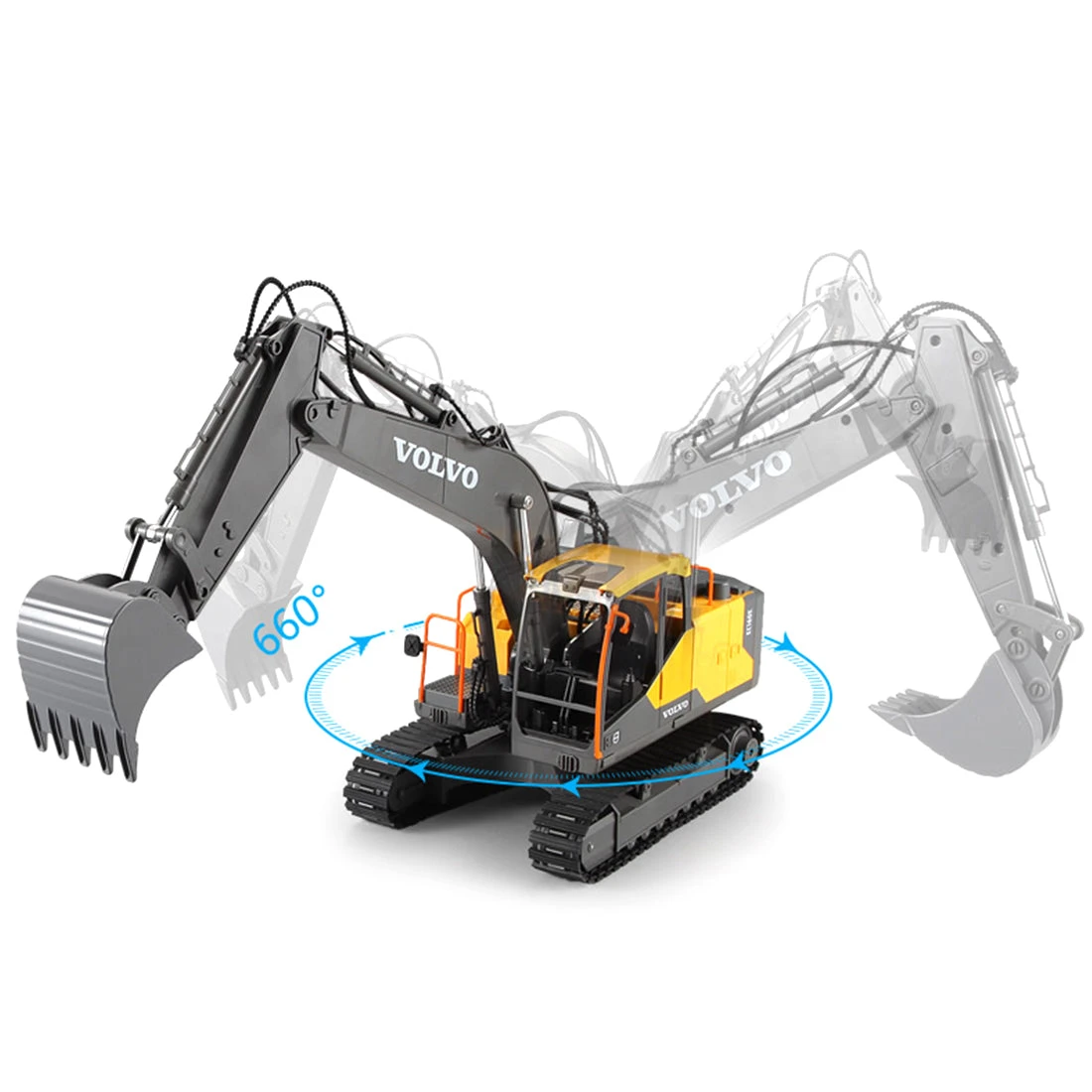 .Functions: 2.4G wireless omni-directional remote control, forward, backward, left turn, right turn. The console can rotate counterclockwise / clockwise 660°. Simulated the horn sound. Each joint can be operated independently, such as boom, arm, bucket and so on
