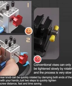.Functions cover workpiece clamping, quick positioning, universal rotation locking, and etching plate bending.
