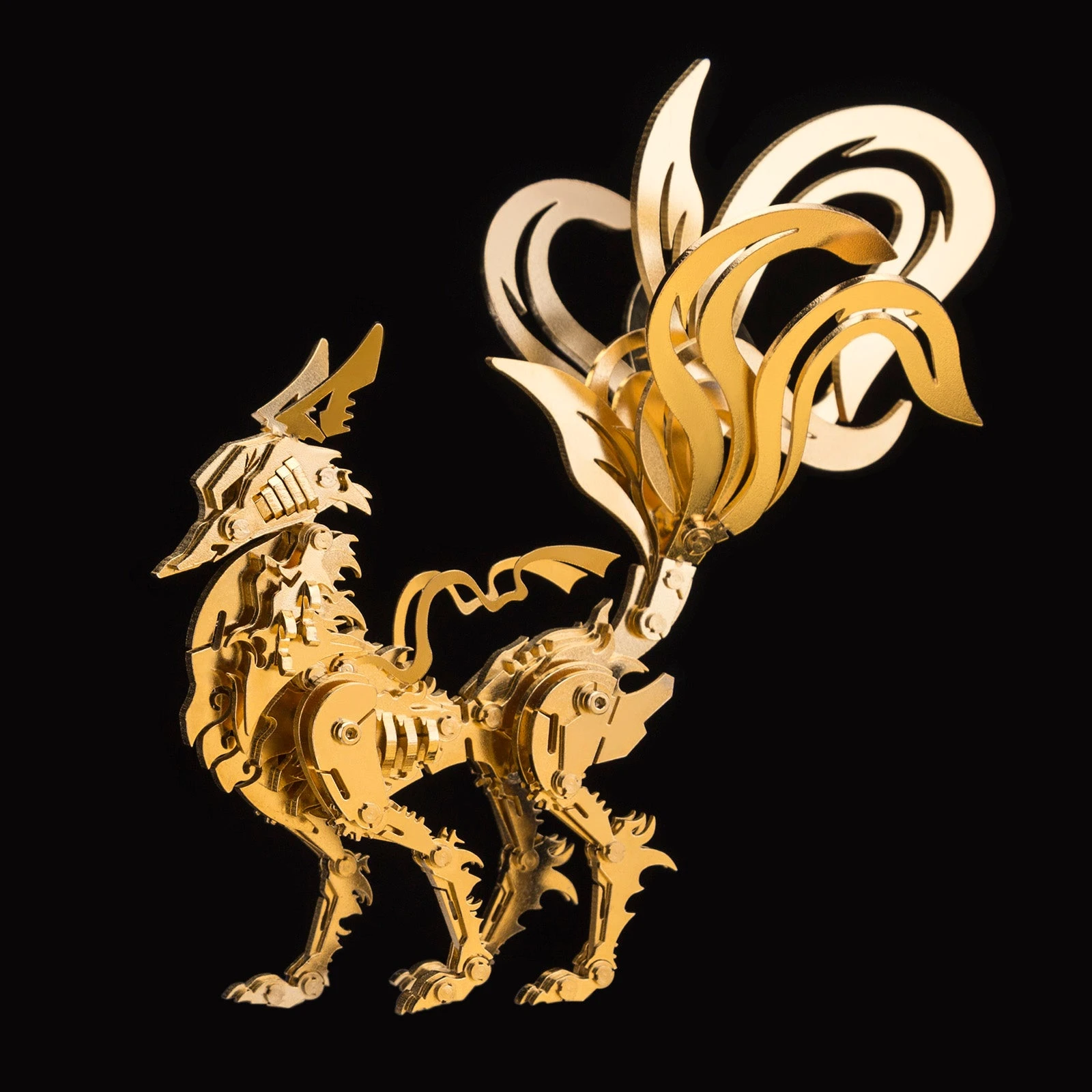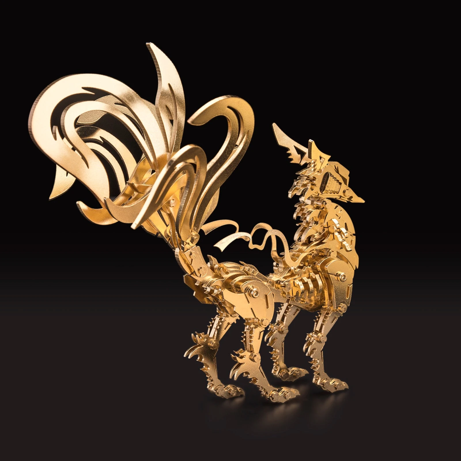 200Pcs+ DIY Assembly Toy Oriental Mythological Creatures Golden Nine-tailed Fox