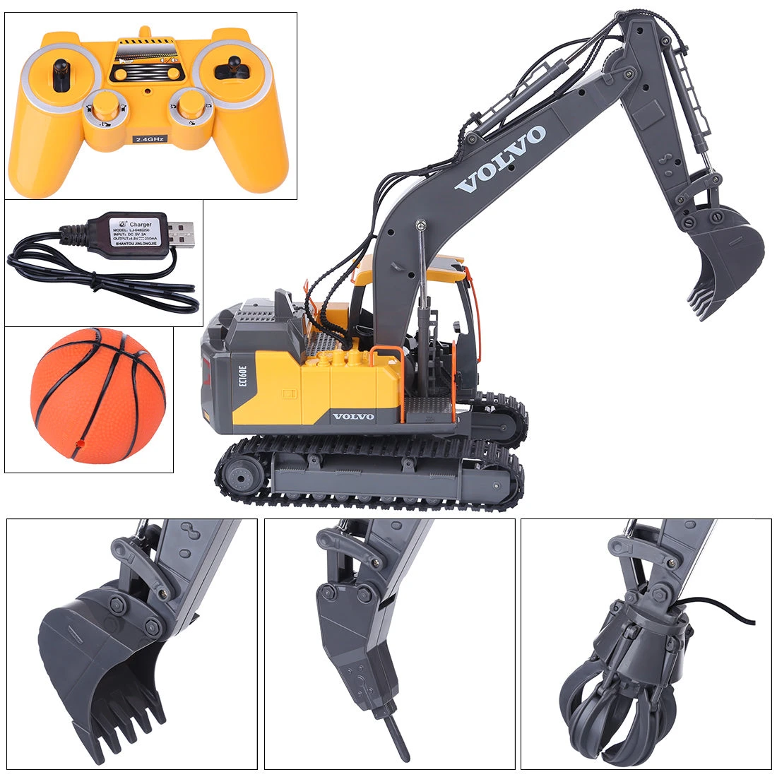 .Functions: 2.4G wireless omni-directional remote control, forward, backward, left turn, right turn. The console can rotate counterclockwise / clockwise 660°. Simulated the horn sound. Each joint of the boom, arm, bucket and so on can be operated independently