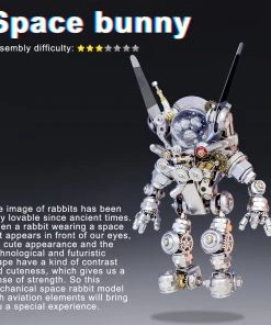 3D DIY Assembly Metal Mechanical Aerospace Rabbit with Lights & Stand Model Sci-fi Punk Toy Set -500CS