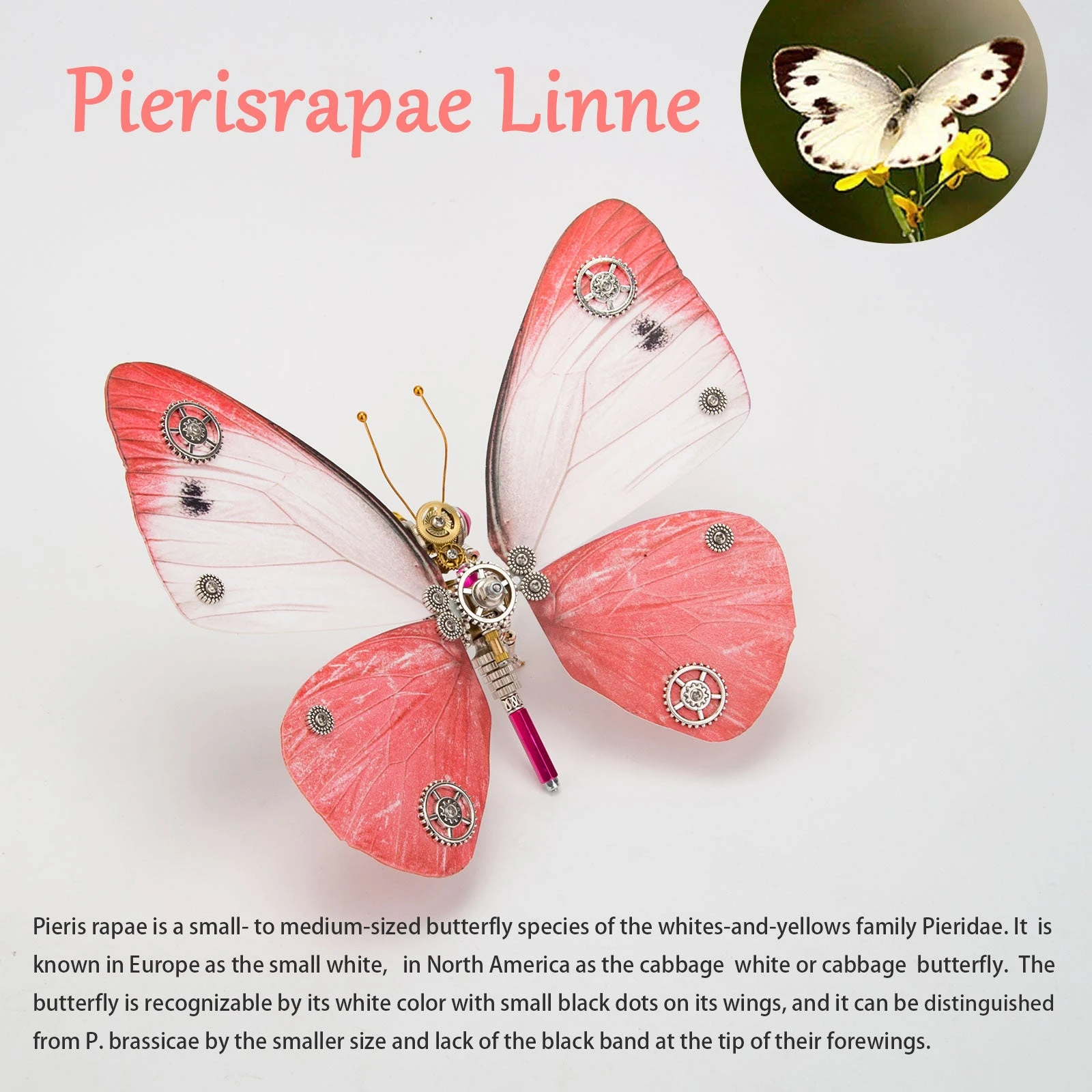 3D Metal Butterfly Model Kit, 3 In 1 Steampunk Butterfly (200PCS+/Pink) – Lymantria Punicea, Alcides Orontes & Pierisrapae Linne