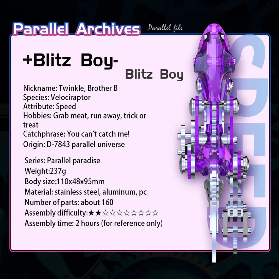 .Velociraptor: The prototype selected by Blitz Boy is the Therizinosaurus, which is also translated as the swift Raptor and the speed dragon. It means “agile thief”in Latin and lives in the late Cretaceous. Its biggest feature is its slender body and “sickle foot”. We specially strengthened the sickle foot, which is.slightly smaller than others,reflecting its agility and sense of speed.
