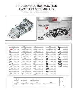 3D Metal Puzzle Hyper Sport Vehicle Assembly DIY Mechanical Racing Car Model SW-058 Toys Sports Car Kit for Adults Kids-1130PCS