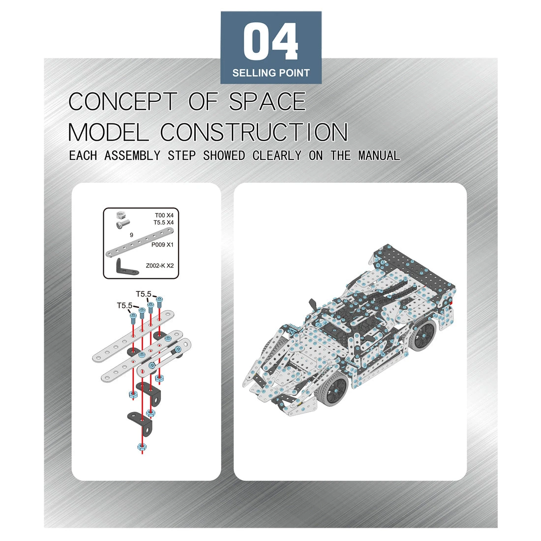 . Kit a total of 1130pcs, with colorful three-dimensional illustrated instructions and assembly tools, easy to understand and easy to assemble, even children can follow the step-by-step instructions to complete the assembly, help children to recognize the assembly tools, learn life skills, metal assembly model compared to traditional blocks and puzzles more interesting and challenging.