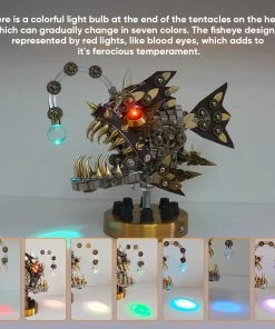 Version 2023 3D Metal Steampunk Craft Puzzle Mechanical Anglefish Model DIY Assembly with Luminous Bulb Creative Gift-700PCS+