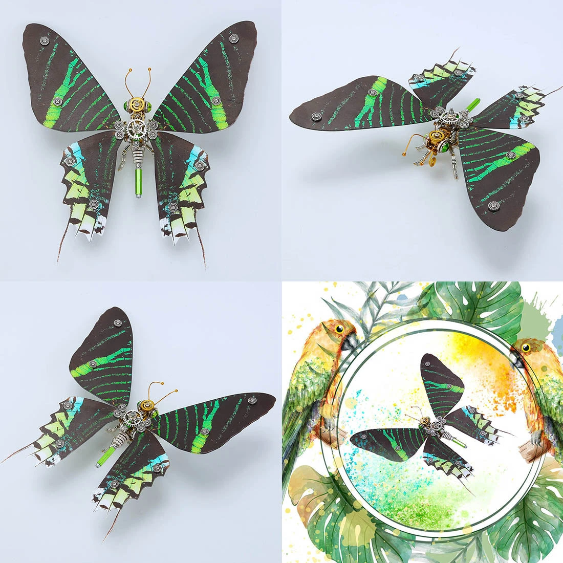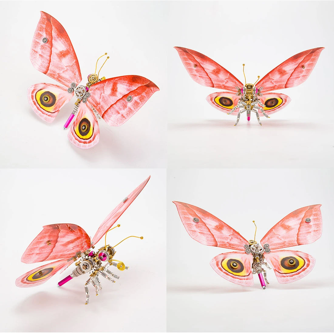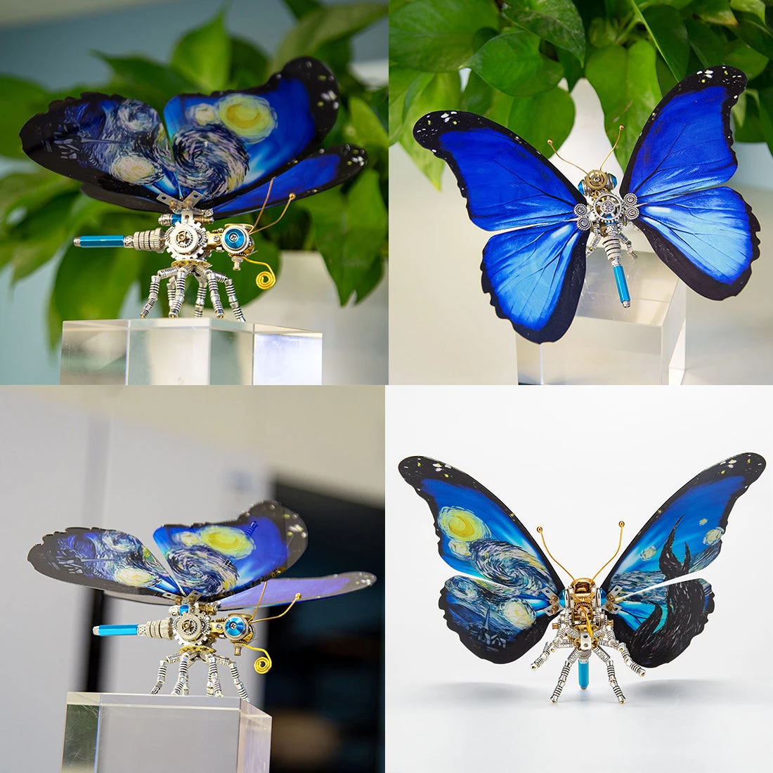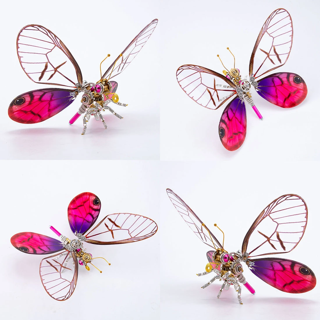 The wear-resistant retro steampunk toys are made of premium-quality metal materials including stainless steel, iron and copper with many carved parts, textured metal parts, visible wing texture with matte/bright surface (remember to tear the film on the bright side) and a thickness of 3-4mm to perfectly restore the real butterfly wings.