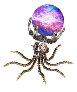 3D Metal Steampunk Galaxy Craft Puzzle Mechanical Octopus with 16 Colors Tap and Remote Control Lamp Model DIY Assembly for Home Decor Creative Gift-1060PCS