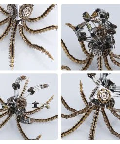 Made of premium quality metal materials (stainless steel+iron+copper), the cool mechanical octopus model features ingenious combination design built with recyclable and reusable gears, rivets, copper rings, pipes and machine parts and decorated with metal and electrical parts (likes bolts, nuts, etc.).