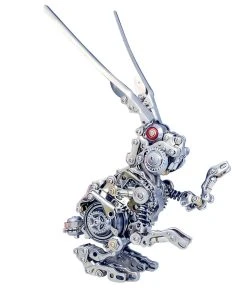 It is well known that the Easter Bunny is one of the Easter symbols. The rabbit has long been considered an ancient symbol of fertility, rebirth and new life. We wanted to come up with a memorable collectible bunny figure as a great gift option for Easter. We thought that a rabbit and a hip metal mechanical model might be able to collide and the two elements were cleverly fused and the concept of a mechanical rabbit model was born. It took us 2 months to develop and design this metal mechanical rabbit model with a strong punk mechanical gear design.
