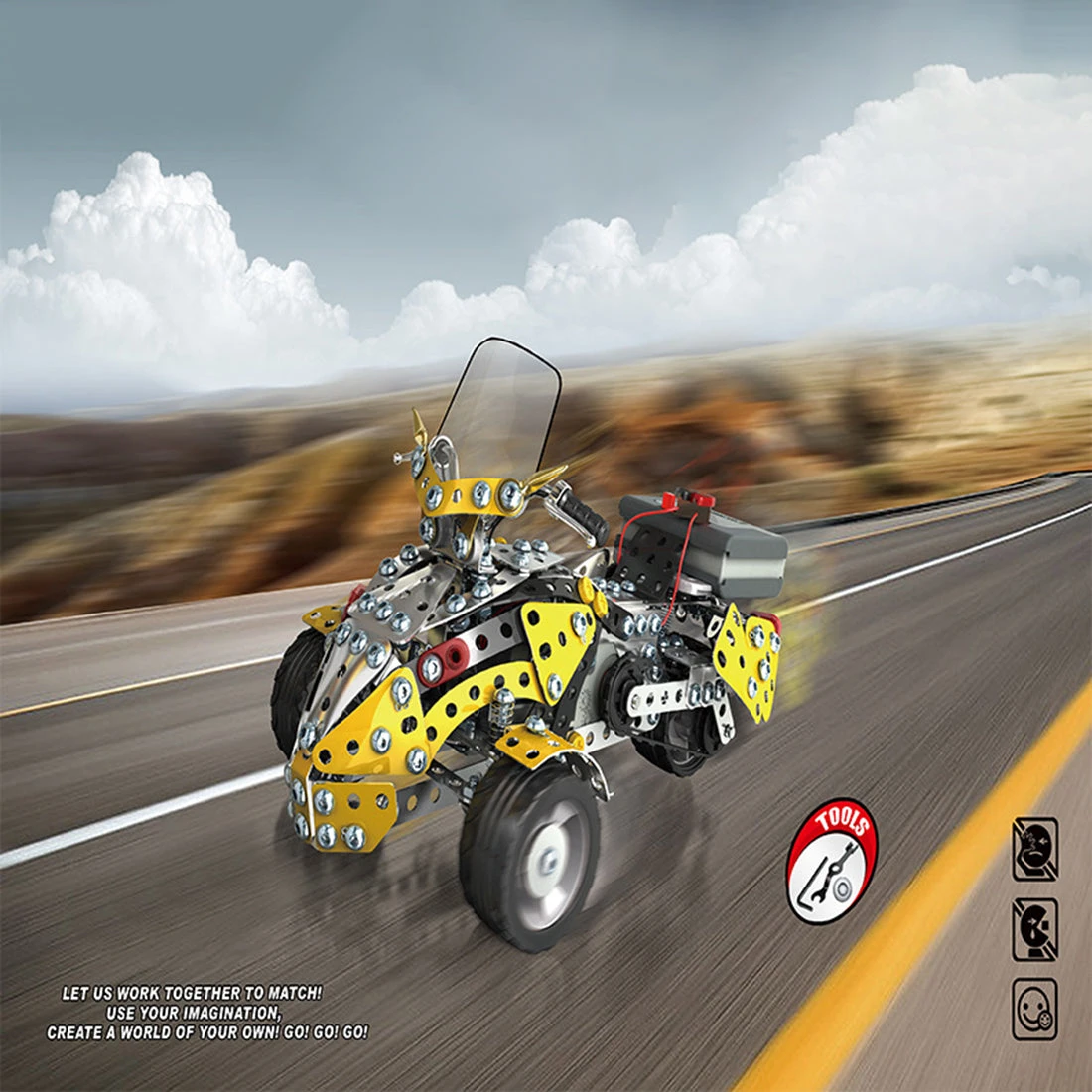 676Pcs Simulation Motor Tricycle Model Kits DIY Metal Assembly Toy
