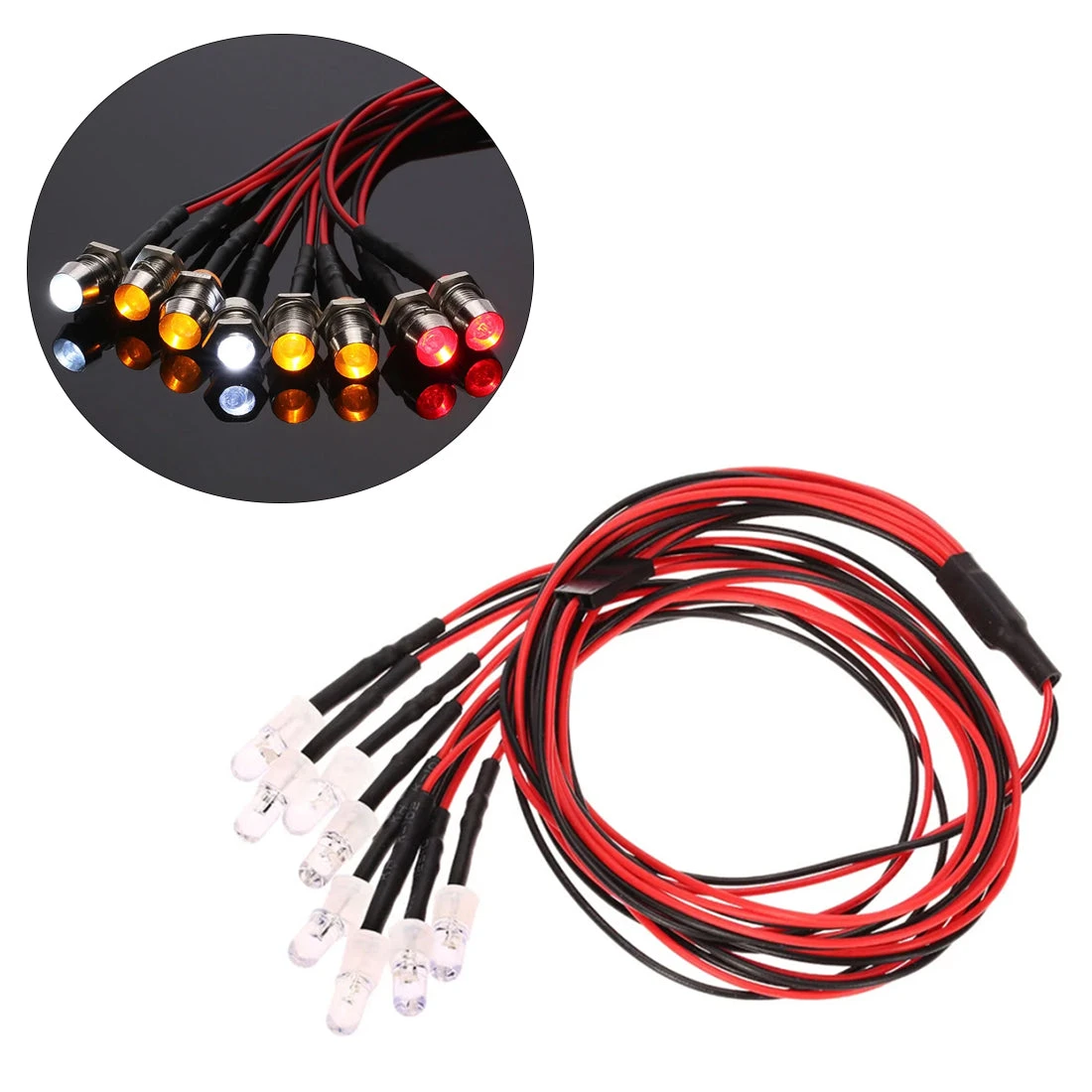 8 LED Lights Kit for 1/10 1/8 Traxxas HSP Redcat RC4WD Tamiya Axial D90 HPI RC Car (2 White + 2 Red + 4 Yellow )
