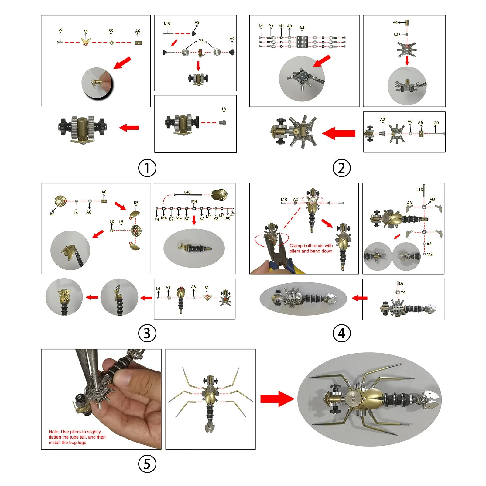 90Pcs Steampunk Insect Metal Model Kits Mechanical Crafts for Home Decor – Deck Insect