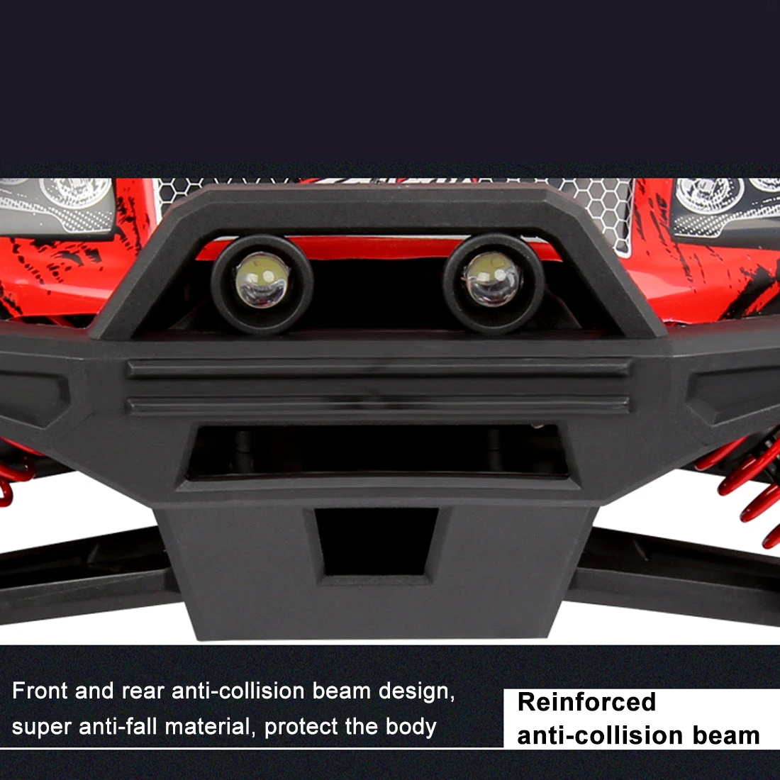 Cool body design, front and rear anti-collision beam design, super anti-fall material, protect the body. The high-brightness LED car light design can also drive in the dark environment. The body holes are fixed and easy to disassemble, which can be DIY modified by professional players.