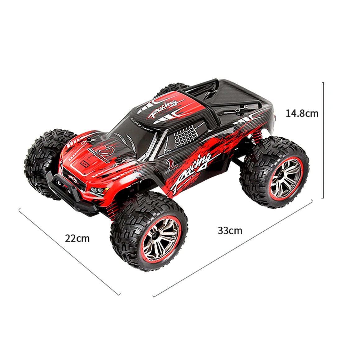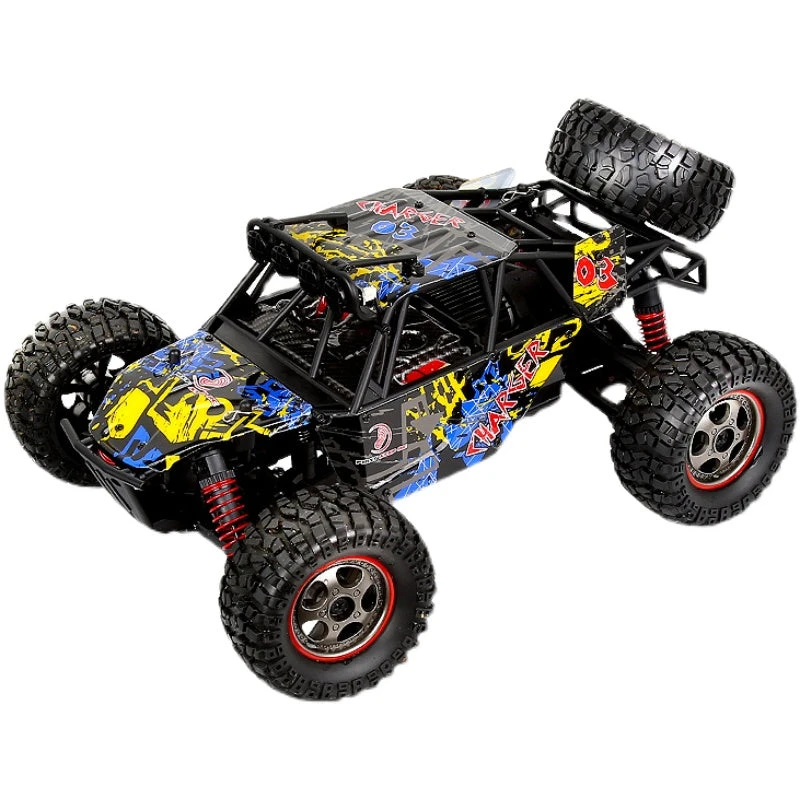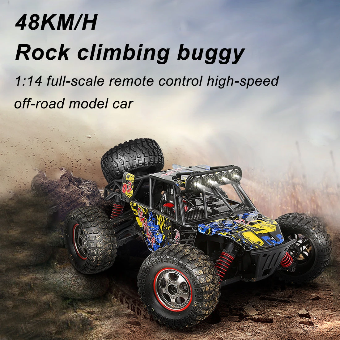 The body is equipped with 4 independent shock absorbers, which are highly shock-proof; anti-skid, shock-resistant and wear-resistant TPR rubber tires, strong grip, and conquer various complex terrains such as sand, grass, and rocks. 45° incline climbing, powerful off-road performance.