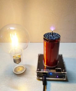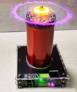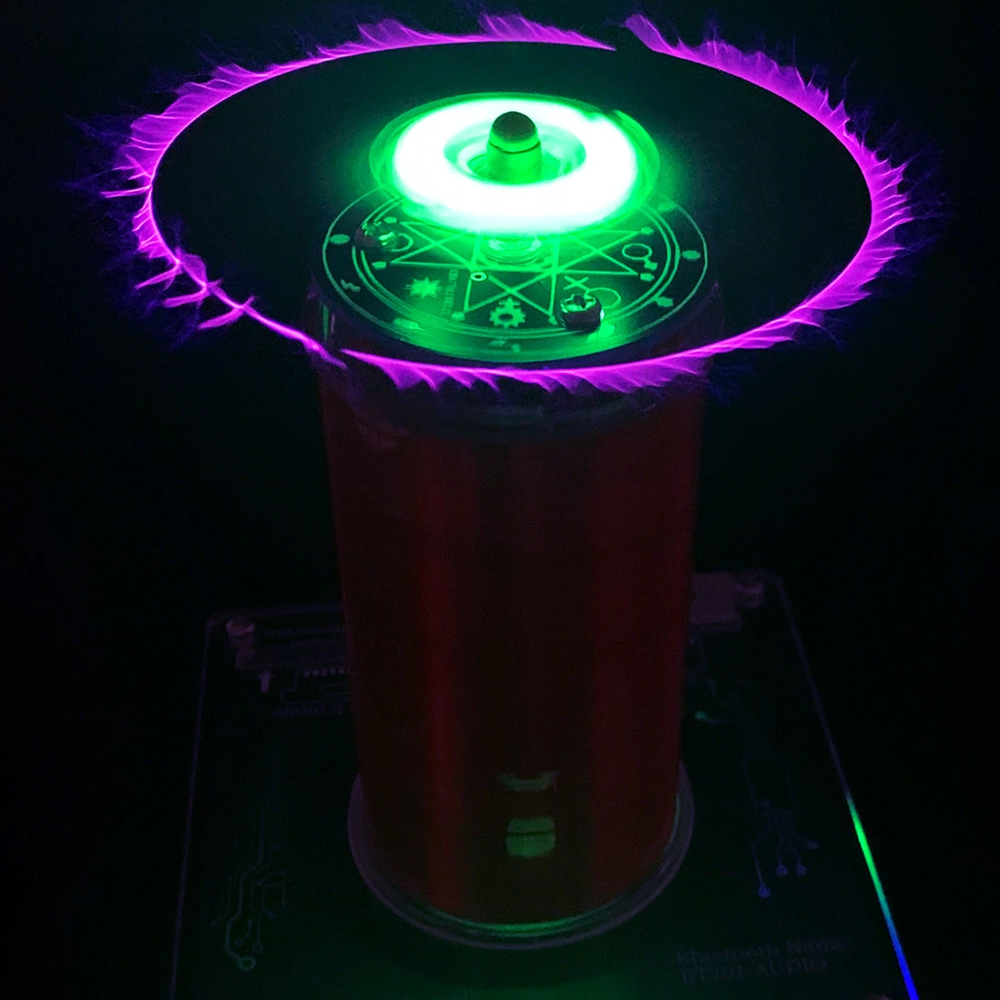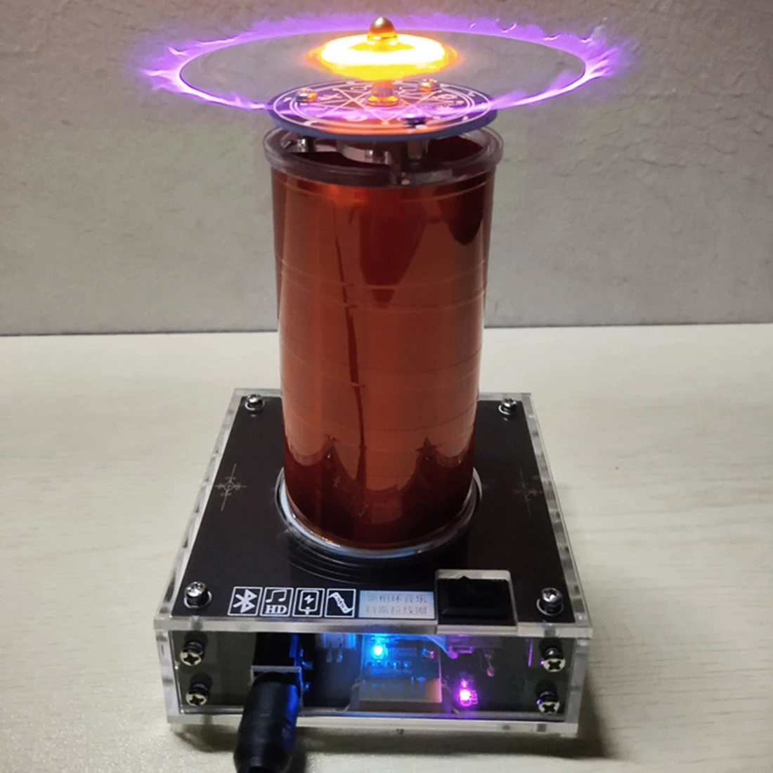.The finished desktop integrated mini solid Tesla coil with a circular coil brings the charm of handheld lighting when plugged in, evoking immerse fun.