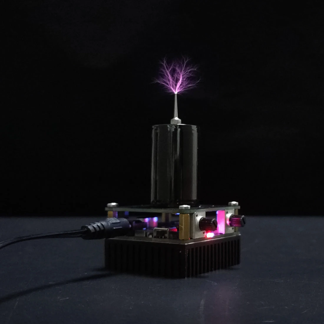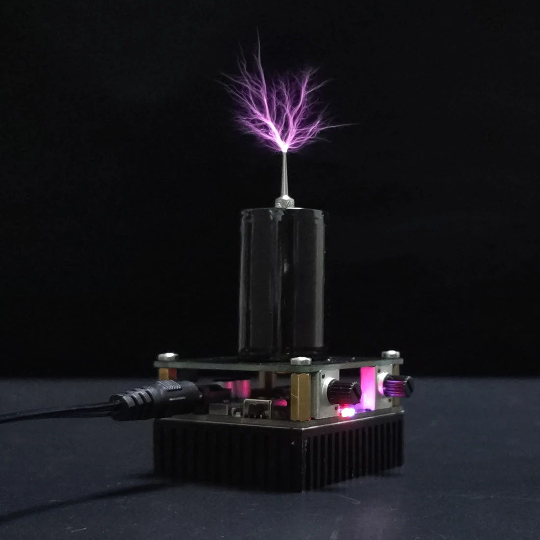 .Mini Tesla integrated product, safe low-voltage operation, ultra-mini design arc safe and touchable .Tesla coil is a high-frequency series resonant transformer that uses LC resonance. It is an artificial lightning generator