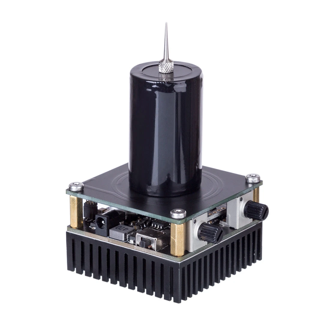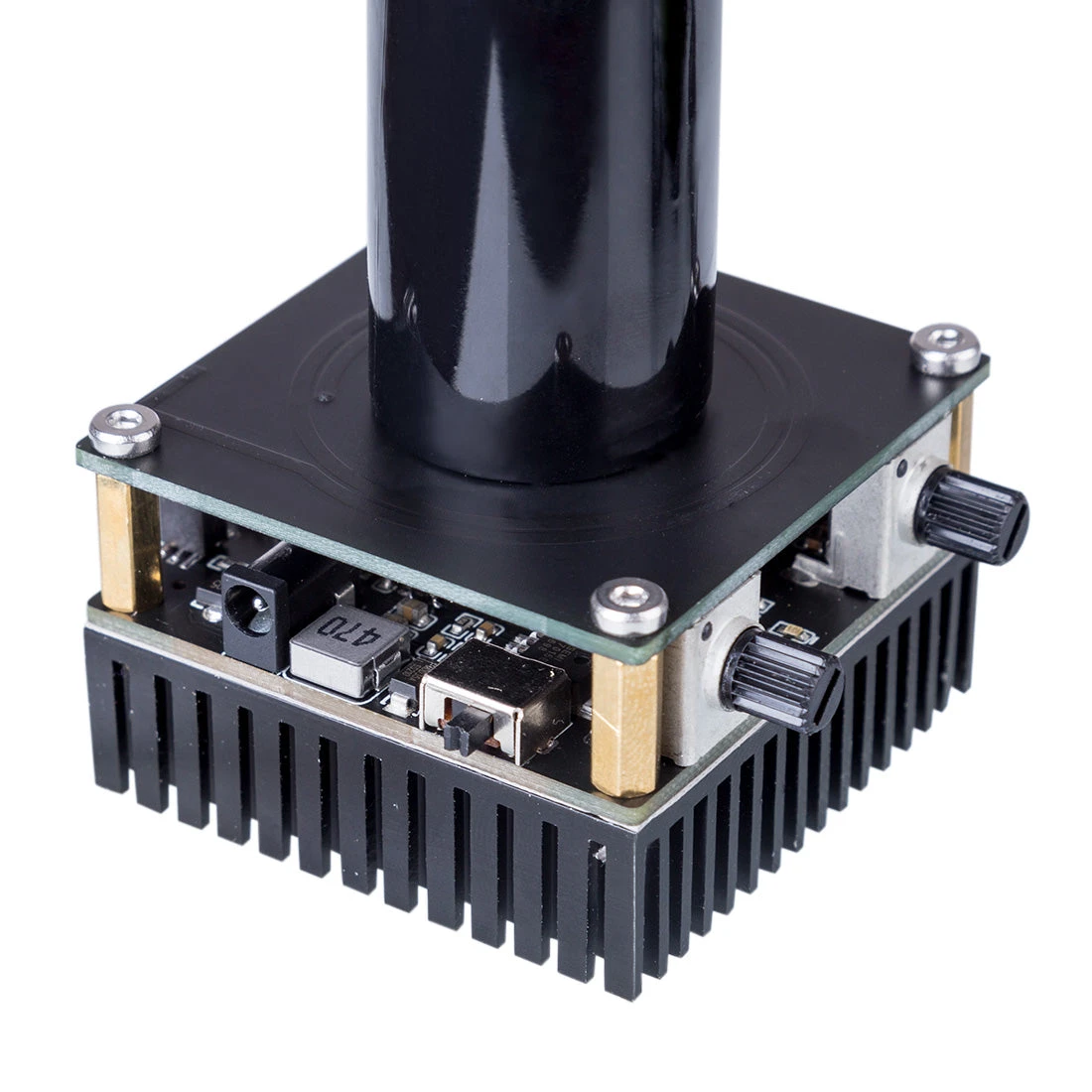 .Note: 1. When the product is working, do not touch the electrodes directly with your hands, otherwise it will burn your skin; 2. Do not touch the electrodes, heat sinks, circuit boards and copper parts, and do not use any conductors to contact the secondary coil, otherwise it will Damage to the Tesla; 3. During the working of the coil, it will cause serious interference to the surrounding electronic products. This is the characteristic of the Tesla coil itself. Please do not let mobile phones or other electronic products close to the Tesla coil to avoid damage; 4. If the Tesla fails to start successfully at first, please touch the discharge tip with an insulated screwdriver, but do not touch it for a long time, it may burn the Tesla; 5. Do not use in a flammable and explosive environment Coil.