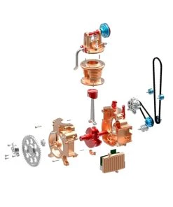 This single cylinder engine is designed based on internal combustion engine, but work with electric motor instead of gasoline. The engine comes with kit ( more than 130pcs ) with a metal box. People have to assemble the part. The whole process is close to the professional assembly line process. You can learn how engine works clearly. Most of our customer are from school or Training institution or family.