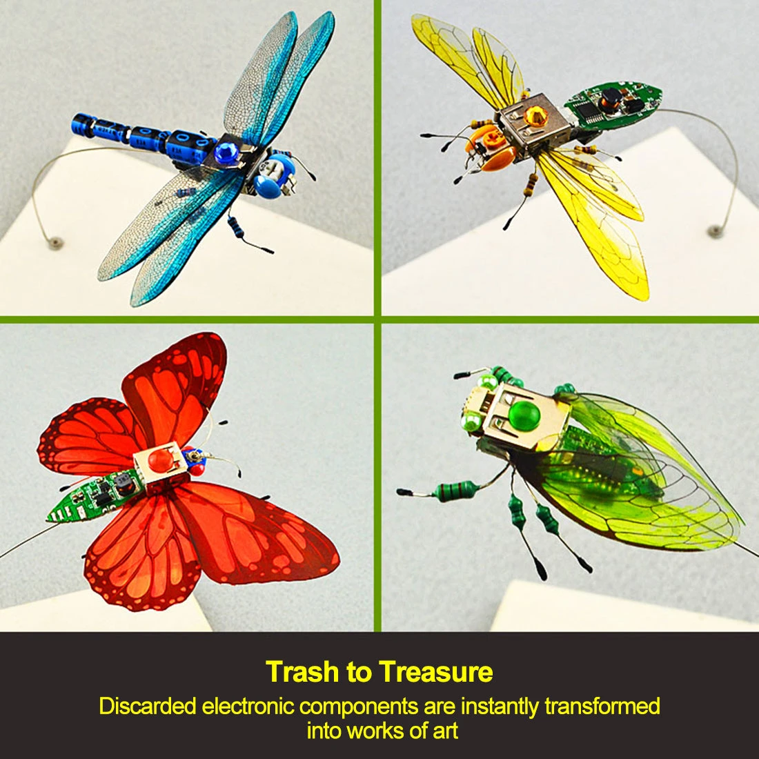 DIY Assembly Mechanical Insect Model Kits Handmade Scientific Toy Set with Voice-activated Photo Frame – Butterfly (Random Color)