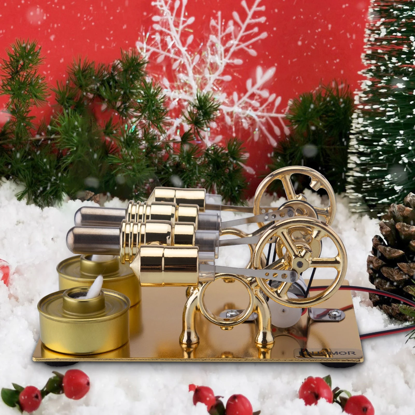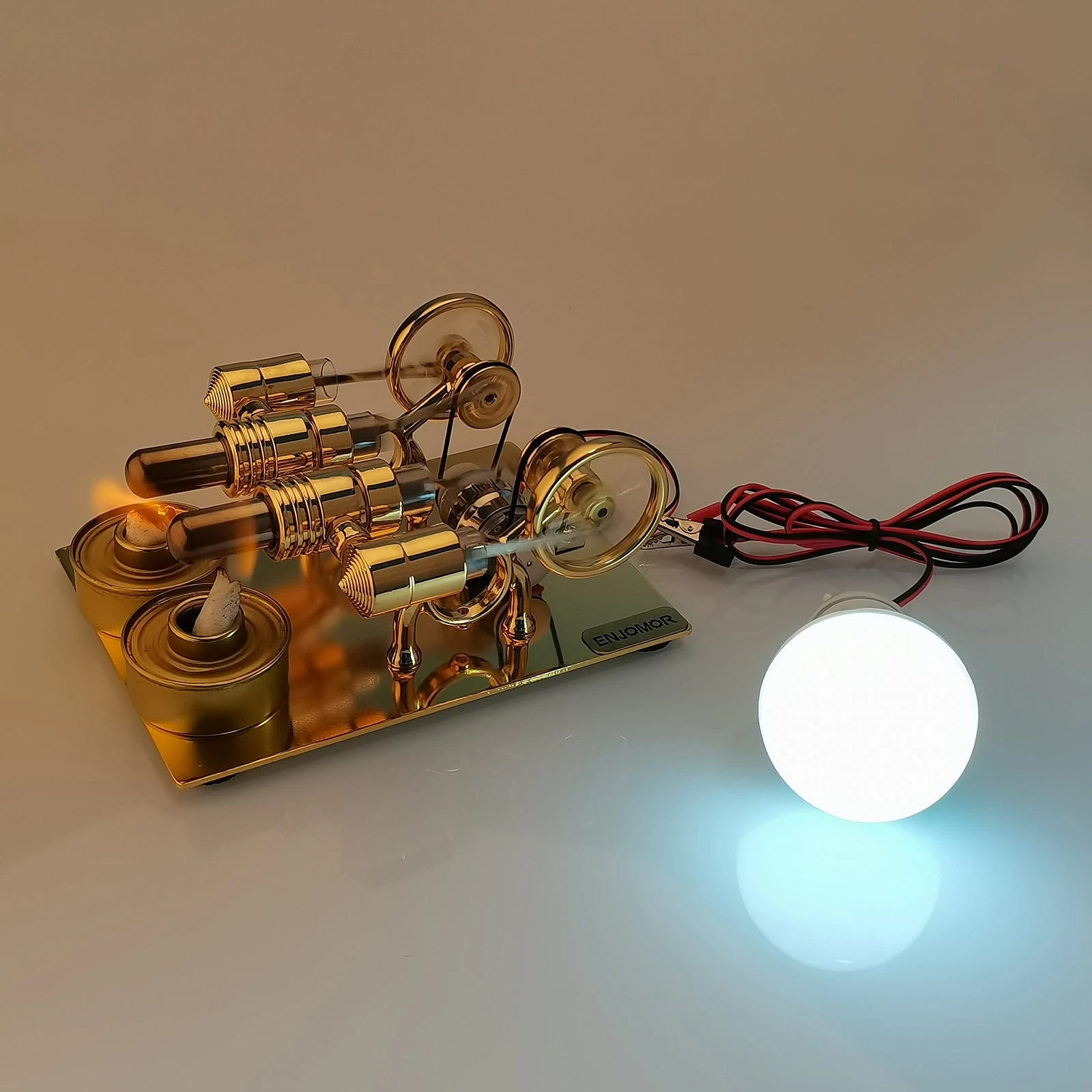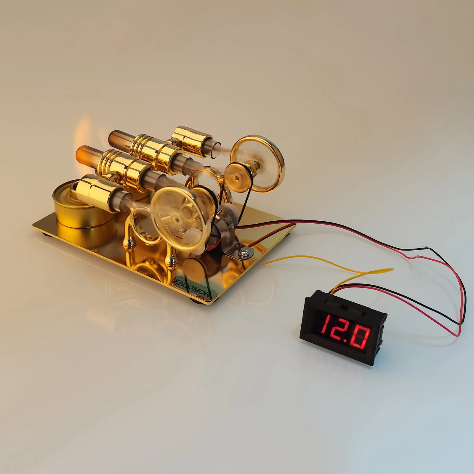 ENJOMOR Stirling Engine 4 Cylinder Hot Air Stirling Engine Generator External Combustion Engine Model