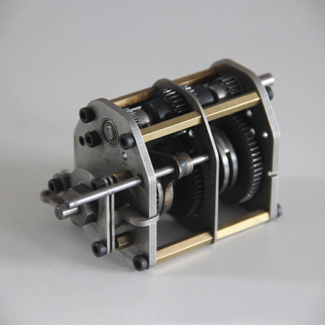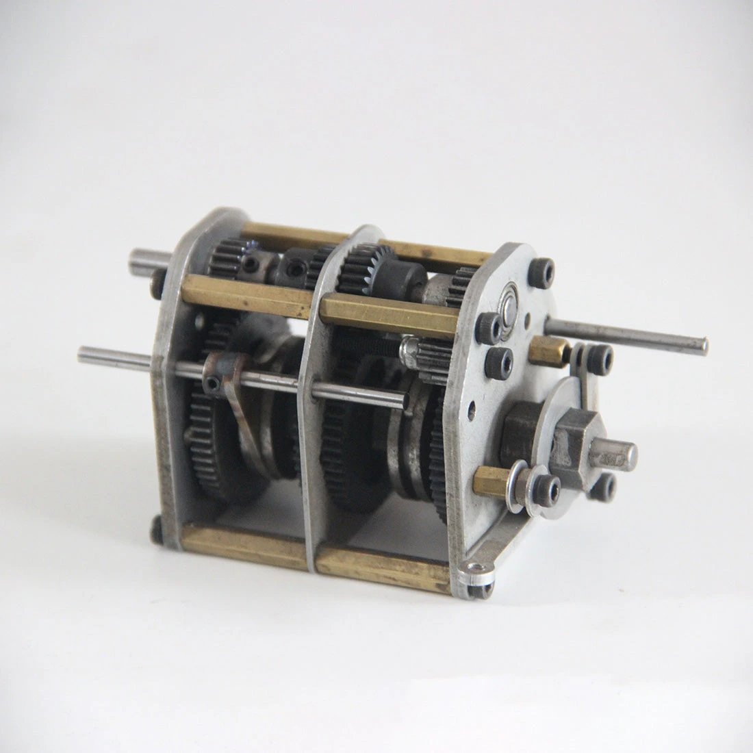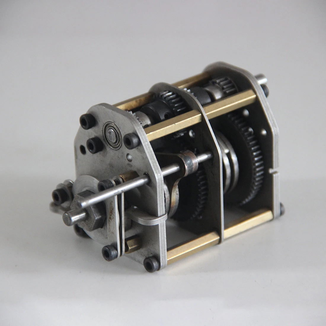 .The four-speed gearbox assembly is made of all-steel gears and a stainless steel frame. It has three forward gears and one reverse gear.