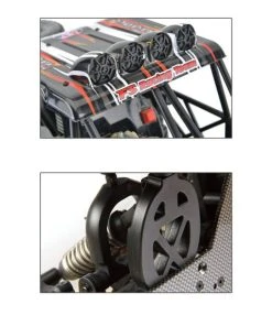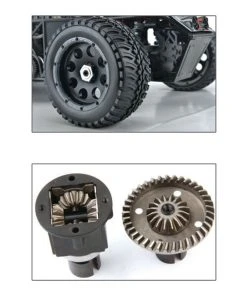 .The dual-steering servo design makes the vehicle more flexible and easier to control. Equipped with CNC metal gears, the vehicle is more powerful.