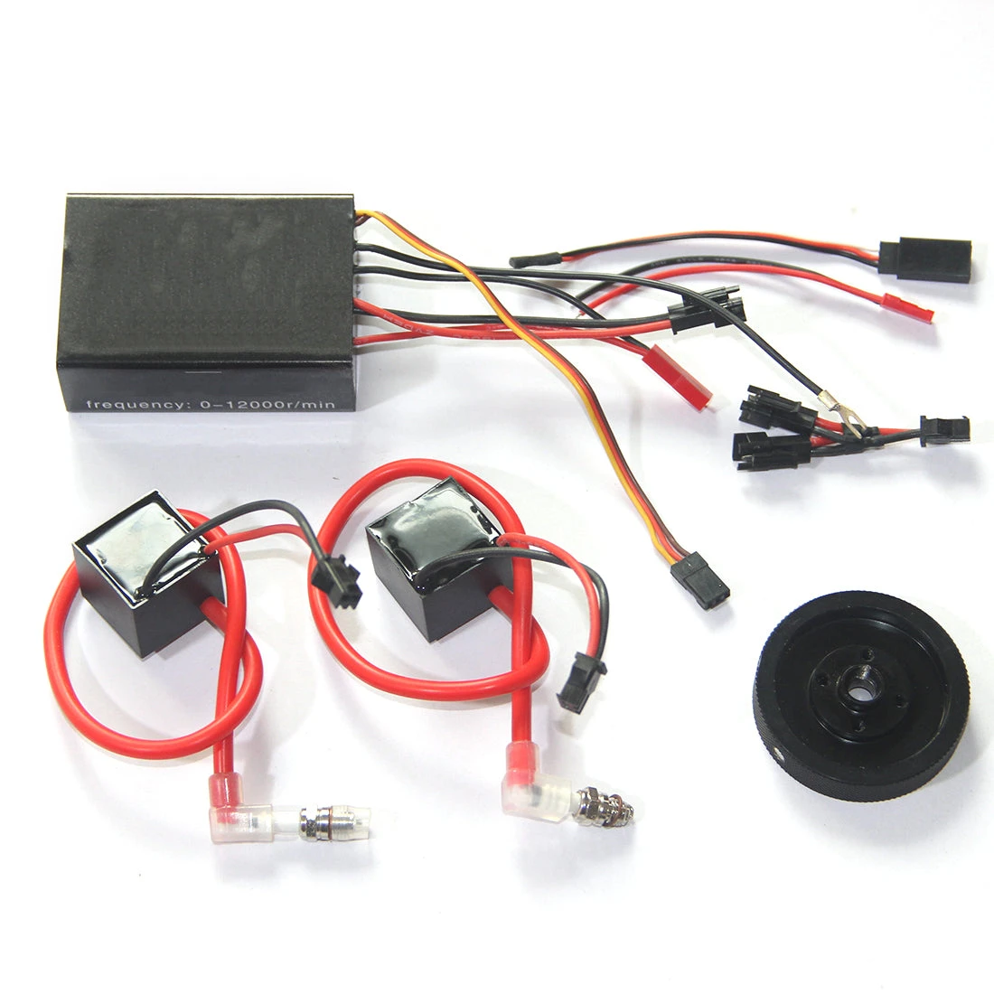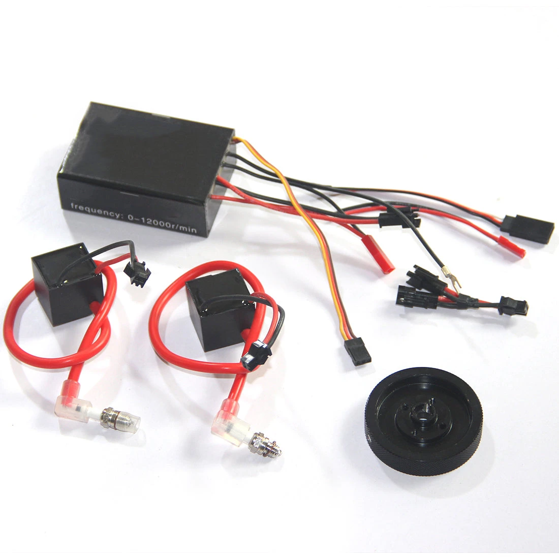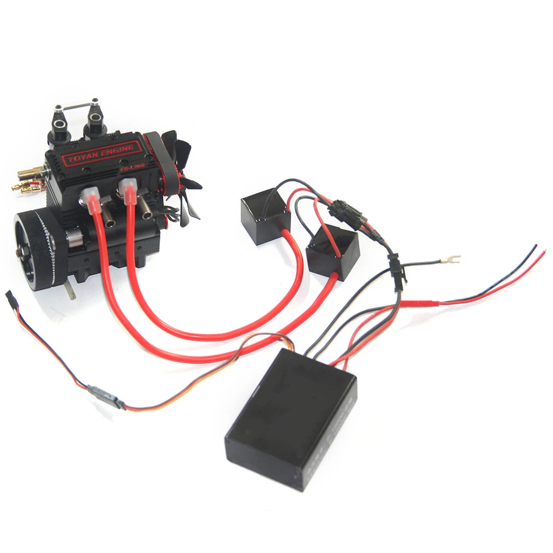 .Containing flywheel with magnet, hall sensor, ignition module, CDI igniter and spark plug, the conversion kit is specially suitable for TOYAN FS-L200 inline double-cylinder nitro engine to convert from nitro fuel to gasoline fuel.