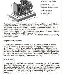 2. The engine adopts water circulation cooled, with radiator tank, water pump and fan. Equipped with ignition system and powered by 4.5V (3 x AA battery).