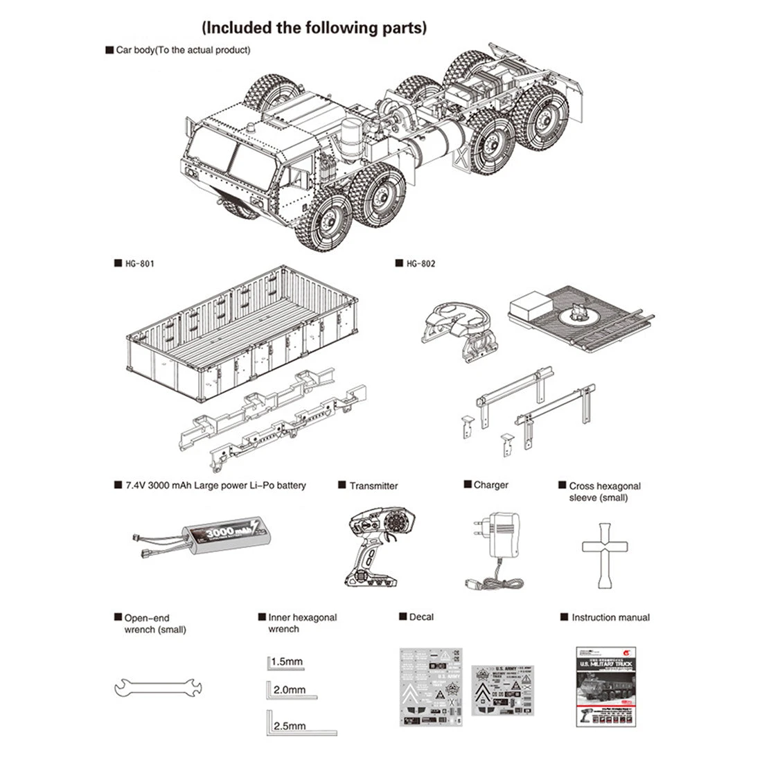 .Tips: This set does not contain battery and charger, please buy them yourself. The trucks are available in desert yellow and olive drab. Trucks can also be upgraded with a combination of lighting and sound simulation (available at this store)