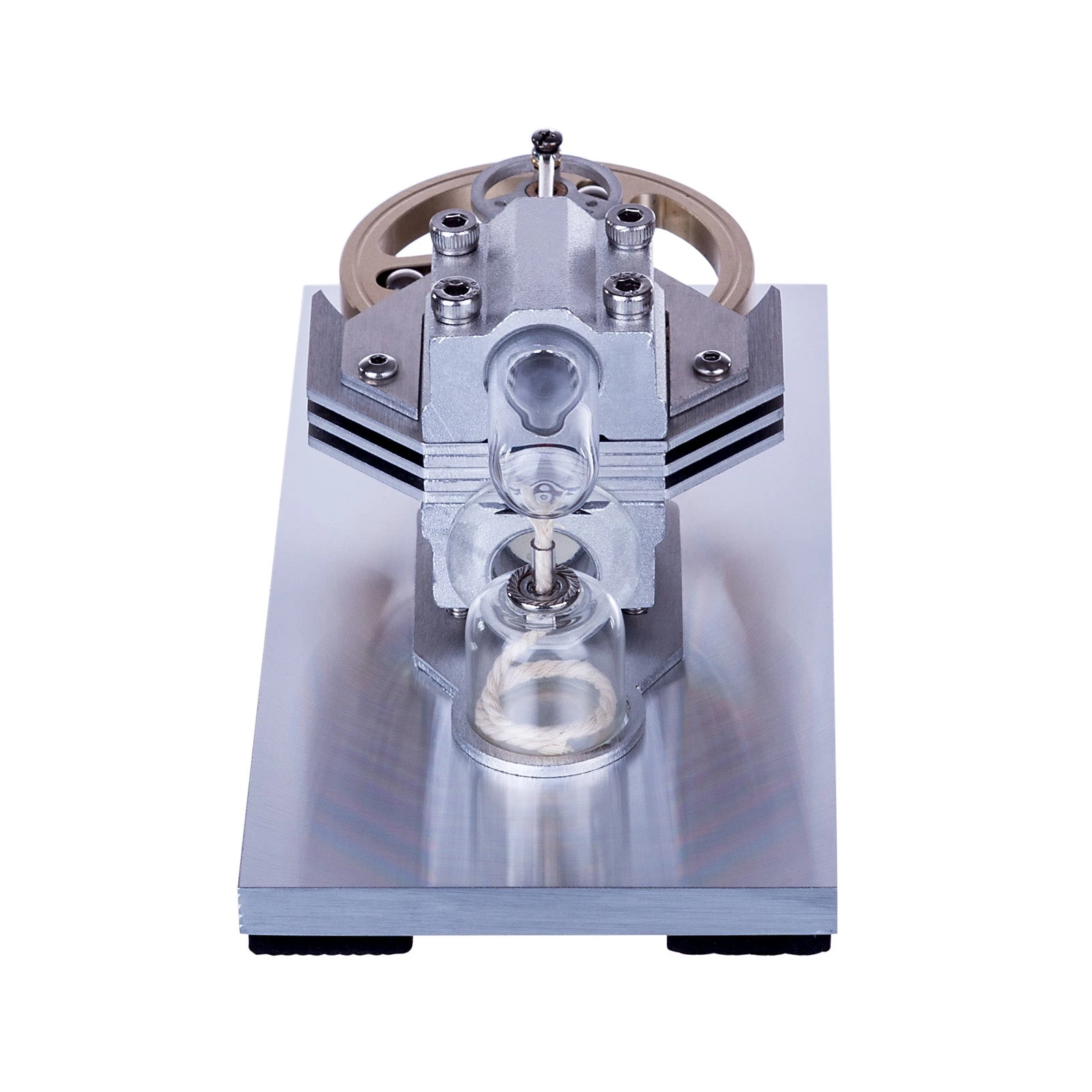 .Starting Method: Place the Stirling engine model on a horizontal table, add two-thirds of 95% alcohol to the alcohol lamp, ignite and heat for 30 seconds, then turn the flywheel, and the engine can run.