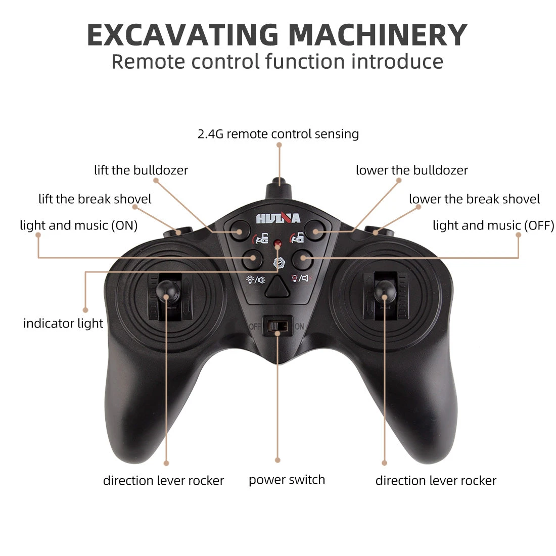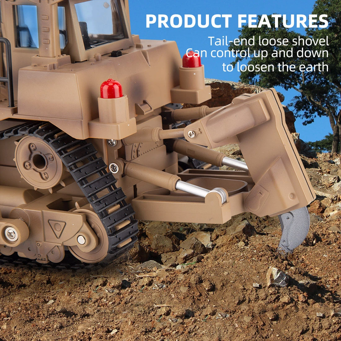 Features forward/backward moving, right/left turn, a push shovel and a dig hook that can rise and fall, along with lights and sound to control. The loosener and push shovel are able to operate at multiple angles. All these abundant functions enrich the play experience of this model.