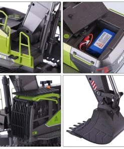 1:14 high simulation excavator, 2.4G wireless all-round remote control, 22CH can go forward, backward, turn left, turn right, the console can rotate 360° infinitely, built-in LED lighting effect, dual crawler drive crawling, boom, each joint such as forearm and bucket can be operated independently by remote control, simulating the function of mining operation.