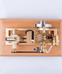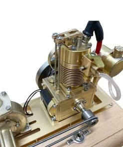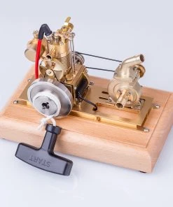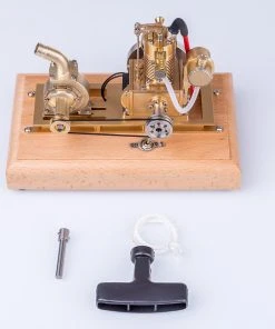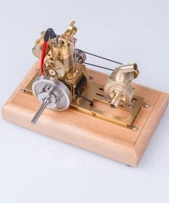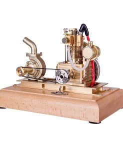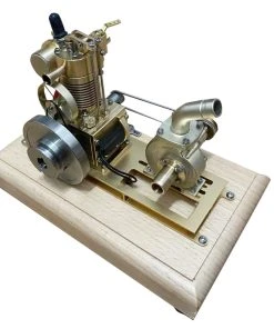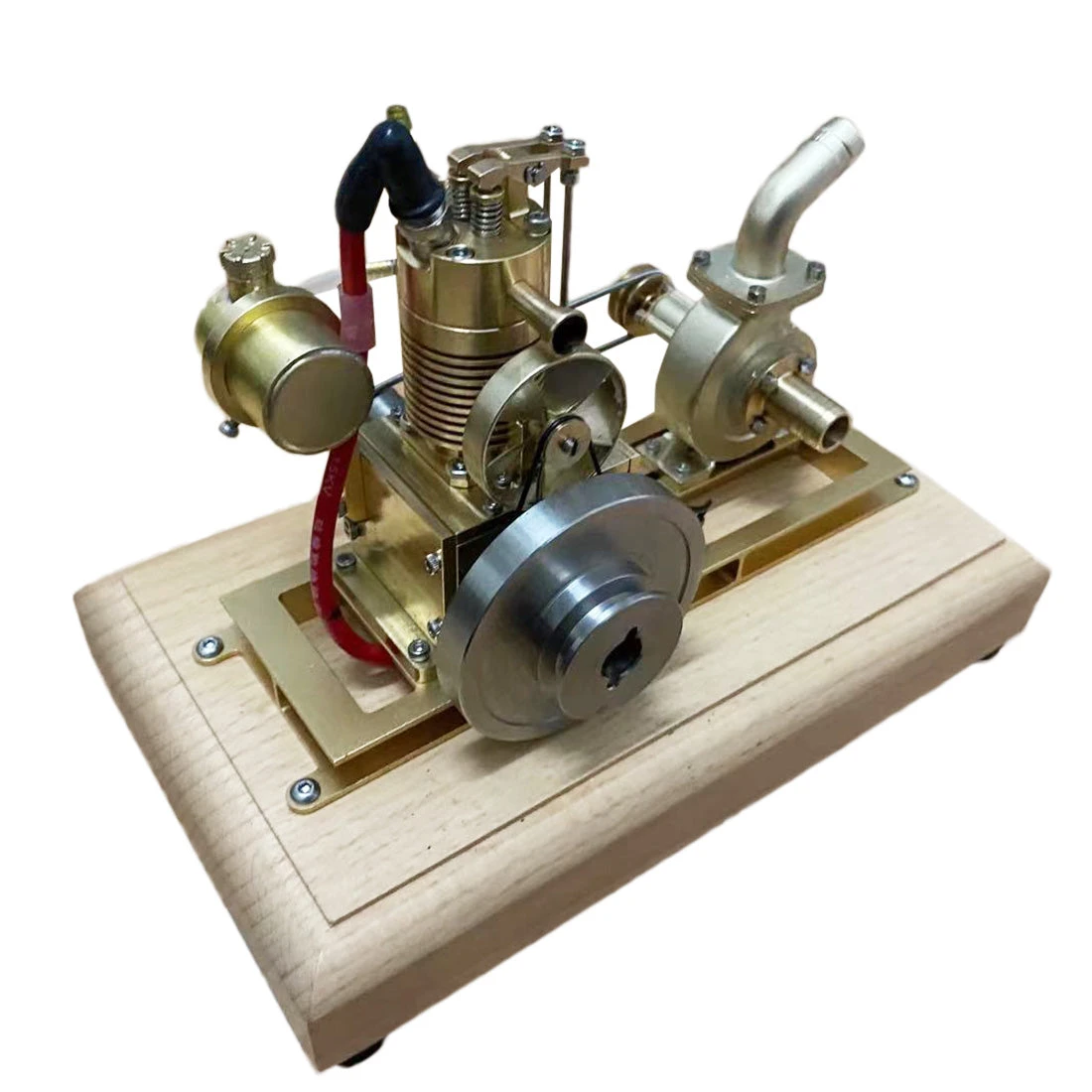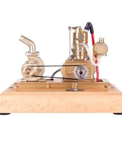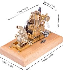 .This is a miniature engine with an air-cooled cooling structure and an adjustable speed carburetor. It is carefully crafted from brass and stainless steel, with a unique and exquisite shape. The addition of an impeller pump is more unique. With a wooden base, it is easy to place and operate. You will love this retro gasoline engine model.