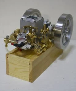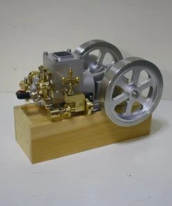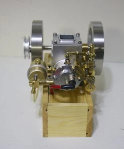 This is the model of horizontal gasoline engine, using the old structure of water cooling, using the speed limiter of fly ball to adjust the speed. It is made of brass, aluminum and stainless steel, with a unique and beautiful shape, stable and reliable structure, and a wooden base for easy placement and operation. You will love this vintage and exquisite gasoline engine model.