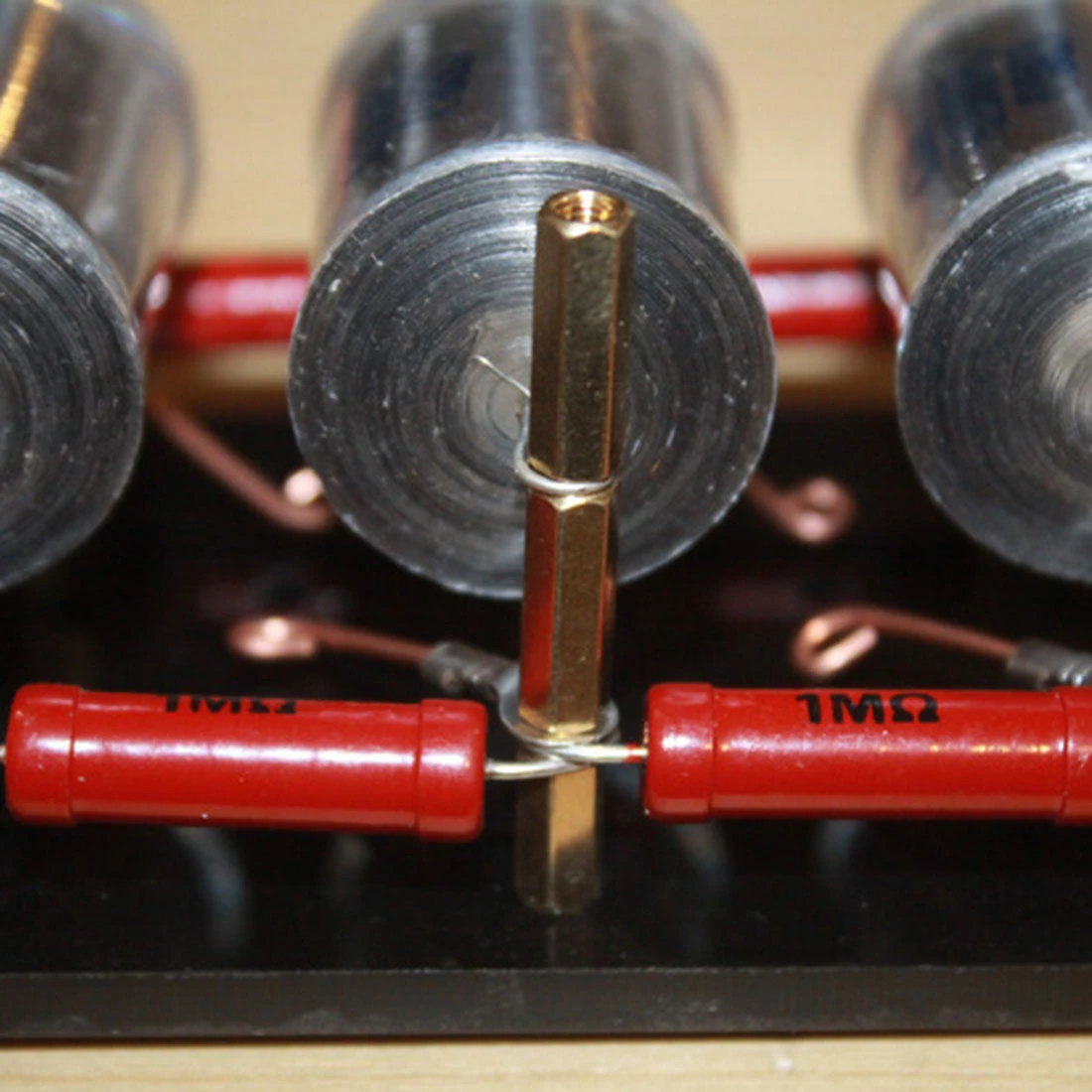Make the spark gap: cut the 35mm long copper wire from the wire skin in the kit, and directly solder it to the terminal with an electric soldering iron, and use needle-nose pliers to the pin at the end of the copper wire is bent into a ring; the two ends of the high-voltage resistor are bent into a ring with needle-nose pliers; the ignition gap and the high-voltage resistor are fixed on a 10mm double-hole copper column with a 15mm copper column, the first level uses two A high-power 10M ohm resistor; adjust the ignition gap: the first level gap can be about 15mm, the last level is 5mm, the gaps in the middle stages gradually become smaller, if the input voltage is less than 20KV, the gap should be reduced accordingly Small; use needle-nose pliers to bend the pins of the high-voltage capacitor into a ring; use a 15mm copper column to fix the high-voltage capacitor on the lower copper column; fix the upper cover with screws and install the discharge electrode; for durability and during transportation Medium anti-shock and anti-drop, you can use hot melt glue to reinforce the capacitor pin and the copper column connection