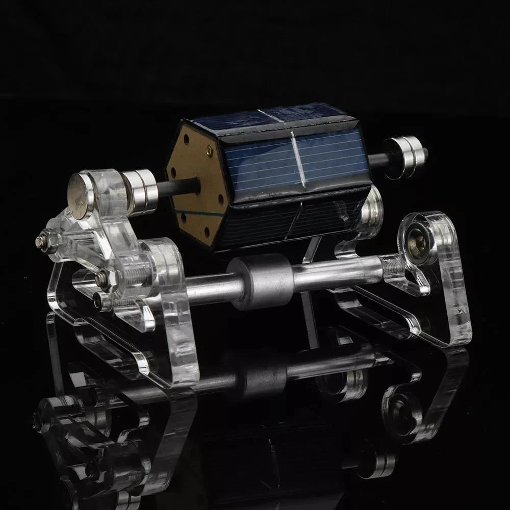 Enginediy Engine (sku:33ED2609610) is a real solar magnetic levitation motor engine model, pure handmade, composed of 6 solar silicon wafer, copper coils, shaft, NdFeB magnet, acrylic stent. The solar magnetic levitation motor engine can save energy in incandescent light, solar light, the light, rotating in the suspended state, the maximum can reach one thousand rpm is interesting, choose your gift, the practice of science, scientific theory to explain and home furnishings!