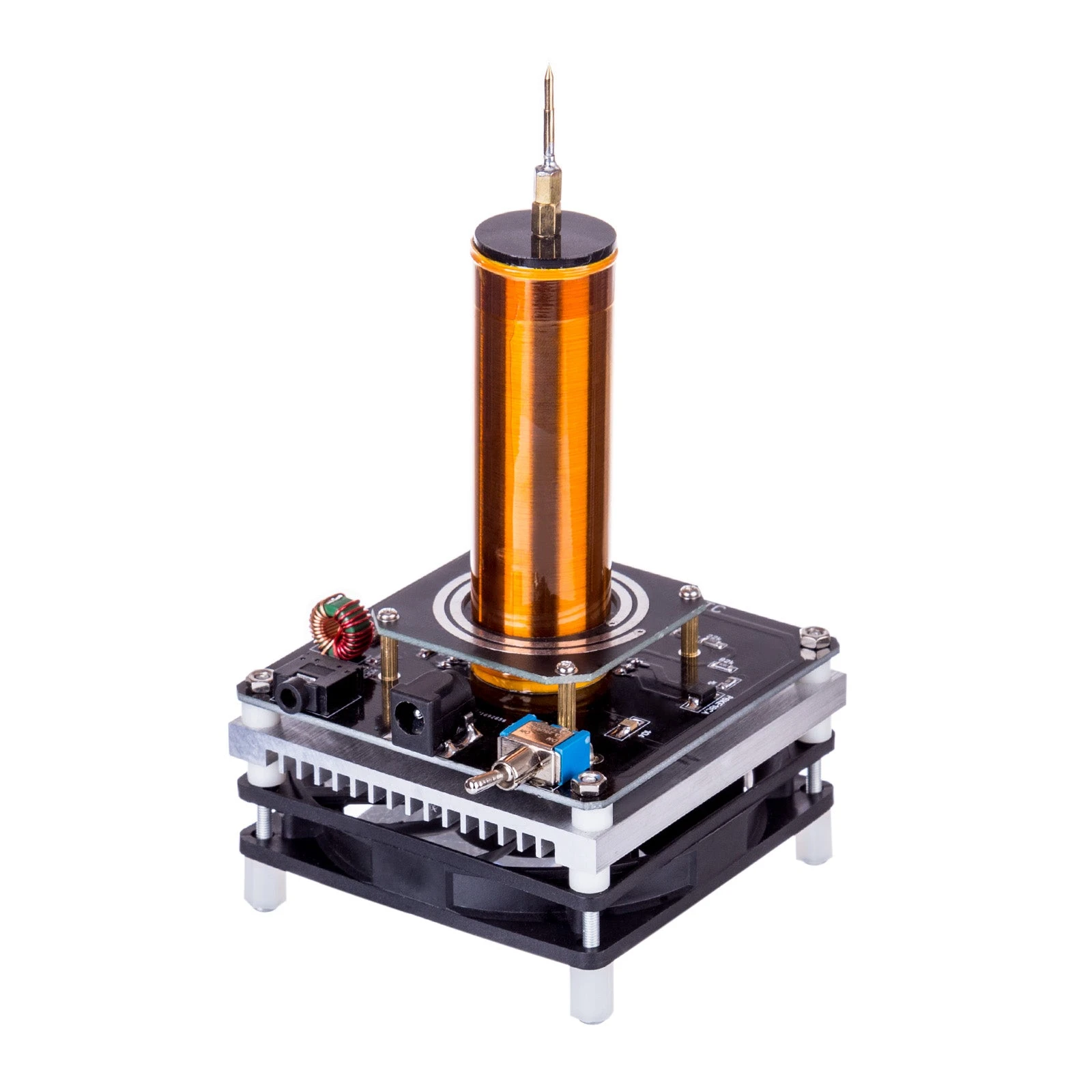 .Note: 1. When the product is working, do not touch the electrodes directly with your hands, otherwise it will burn your skin; 2. Do not touch the electrodes, heat sinks, circuit boards and copper parts, and do not use any conductors to contact the secondary coil, otherwise it will Damage to the Tesla; 3. During the working of the coil, it will cause serious interference to the surrounding electronic products. This is the characteristic of the Tesla coil itself. Please do not let mobile phones or other electronic products close to the Tesla coil to avoid damage; 4. If the Tesla fails to start successfully at the beginning, please touch the discharge tip with an insulated screwdriver, but do not touch it for a long time, it may burn the Tesla 5. Do not use the coil in a flammable and explosive environment