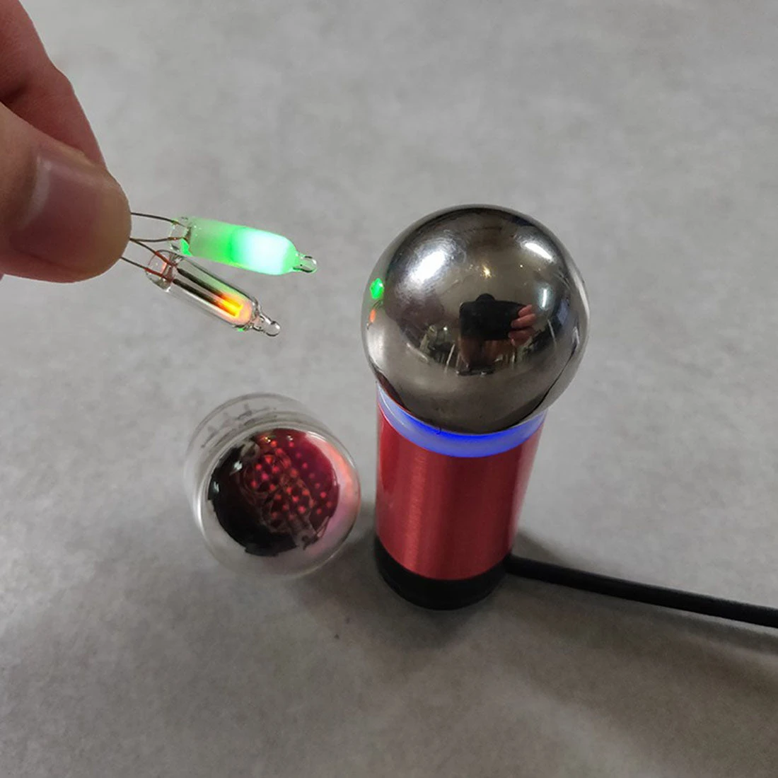 .Mini Lightning: This mini version of the Tesla coil is small in size. It is powered by a mobile power supply and is easy to carry and display. It can generate an arc with a length of 2mm. You can easily touch it.