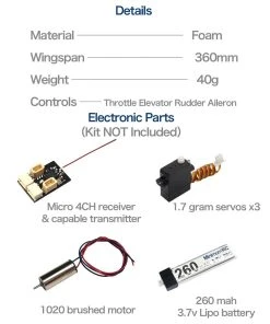 .Battery: 3.7V 260mAh Li-Po Battery (Not Included)