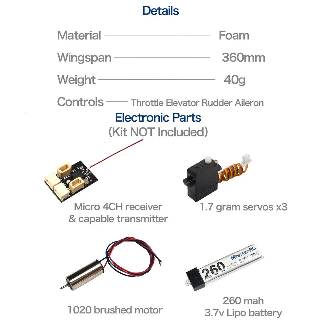 .Excellent Performance: The PT-17 is a two-seater, single-engine biplane developed by the United States in 1933, as a trainer. During World War II, the U.S. Navy trained pilots in large numbers with the PT-17. This MinimumRC PT17 high-fidelity aircraft adopts 4CH control with excellent sports performance, powerful high-level motor system, and sensitive response system for players to get started in minutes.