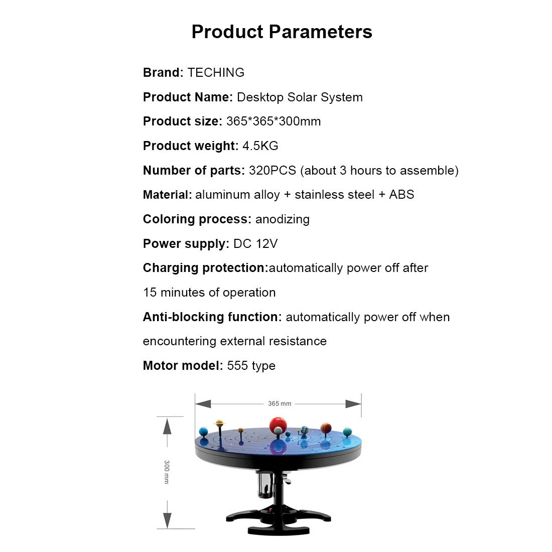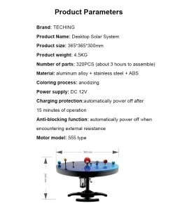 The solar system is composed of 350PCS+ parts, and the assembly takes about 3-4 hours, with a paper English instruction manual, you will personally experience the whole process of assembling from small parts to complete finished products, and build your own shocking solar system model